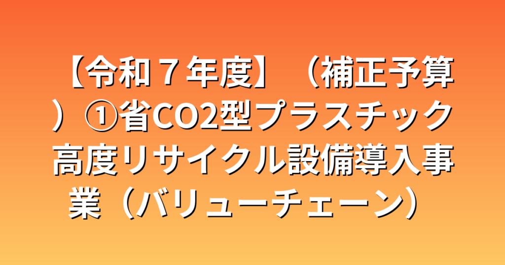 【令和7年度】(補正予算)①省CO2型プラスチック高度リサイクル設備導入事業(バリューチェーン)