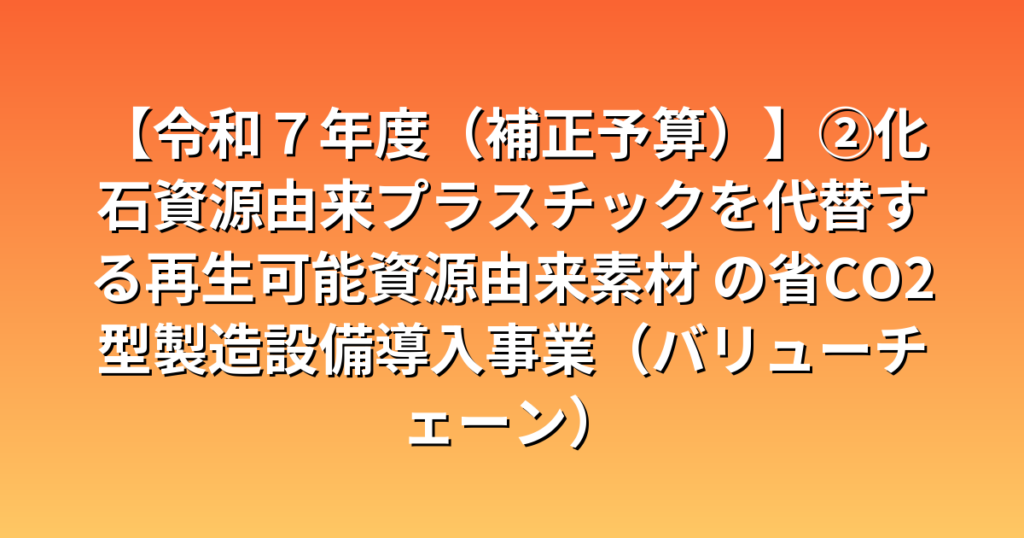 【令和7年度(補正予算)】②化石資源由来プラスチックを代替する再生可能資源由来素材 の省CO2型製造設備導入事業(バリューチェーン)
