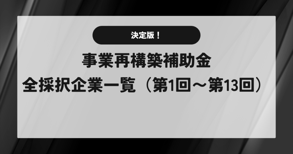 【決定版】事業再構築補助金 全採択企業一覧(第1回〜第13回)
