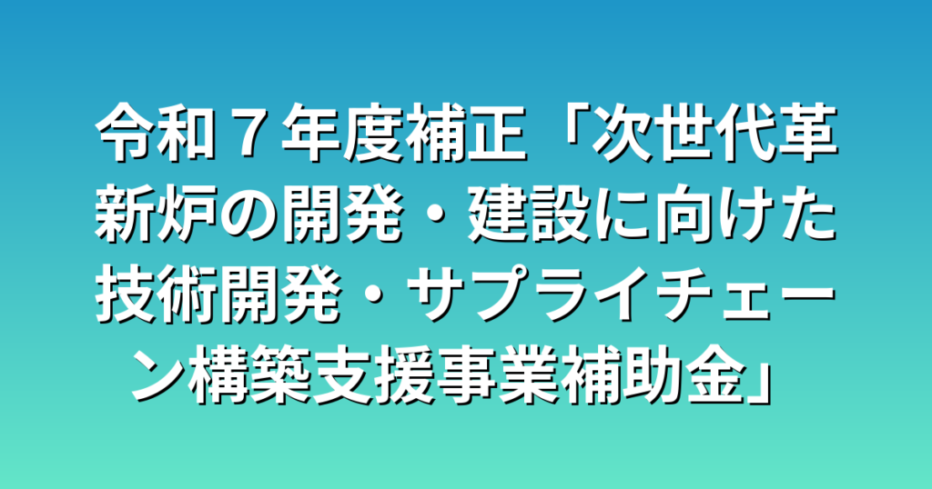 令和7年度補正「次世代革新炉の開発・建設に向けた技術開発・サプライチェーン構築支援事業補助金」
