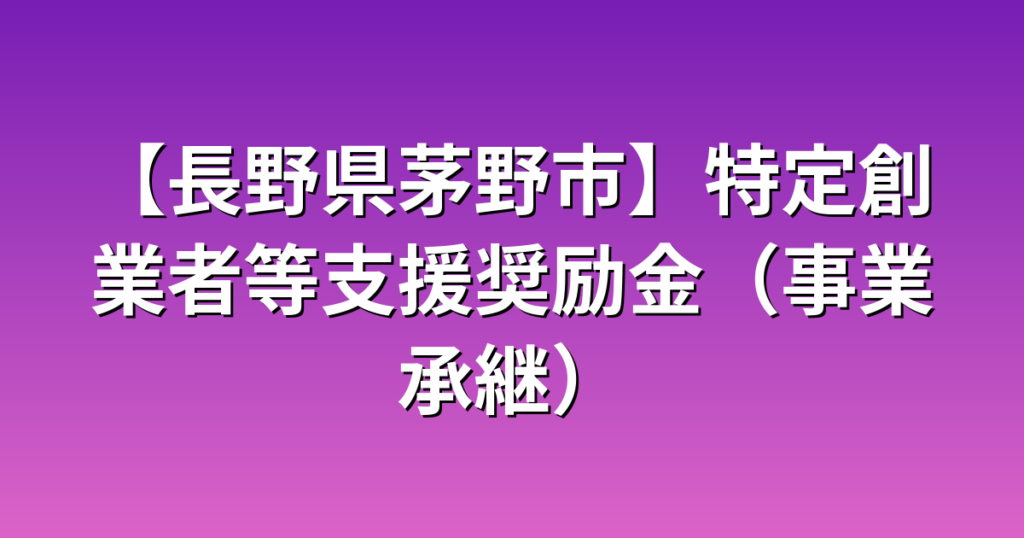 【長野県茅野市】特定創業者等支援奨励金(事業承継)