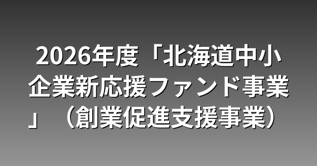 2026年度「北海道中小企業新応援ファンド事業」(創業促進支援事業)