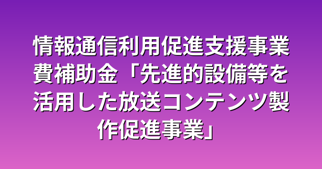 情報通信利用促進支援事業費補助金「先進的設備等を活用した放送コンテンツ製作促進事業」