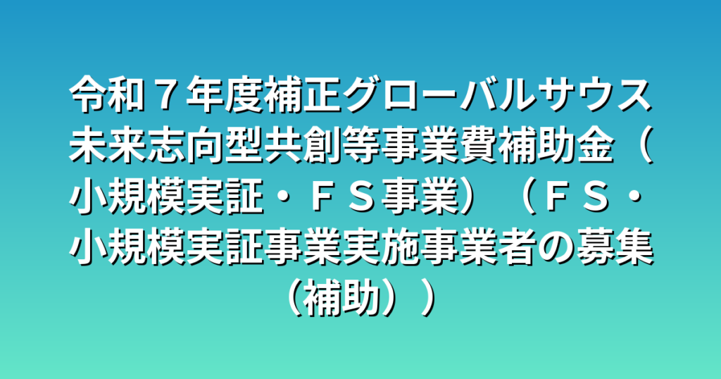 令和7年度補正グローバルサウス未来志向型共創等事業費補助金(小規模実証・FS事業)(FS・小規模実証事業実施事業者の募集(補助))