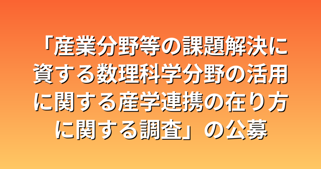 「産業分野等の課題解決に資する数理科学分野の活用に関する産学連携の在り方に関する調査」の公募