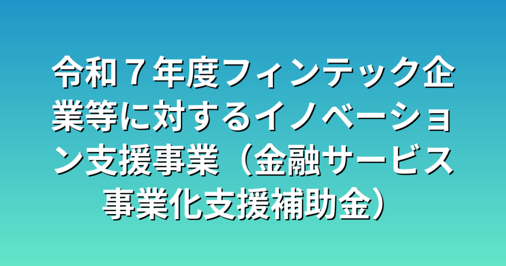 令和7年度フィンテック企業等に対するイノベーション支援事業(金融サービス事業化支援補助金)