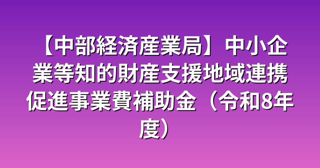 【中部経済産業局】中小企業等知的財産支援地域連携促進事業費補助金(令和8年度)