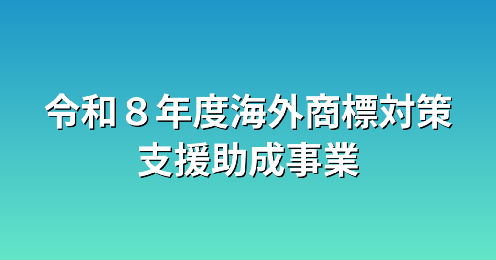 海外展開を加速!商標保護で世界へ羽ばたけ!令和8年度海外商標対策支援助成事業:海外展開を目指す中小企業必見!自社で活用する具体策海外展開のチャンス!「令和8年度海外商標対策支援助成事業」を徹底解説グローバル化が進む現代において、中小企業が... -