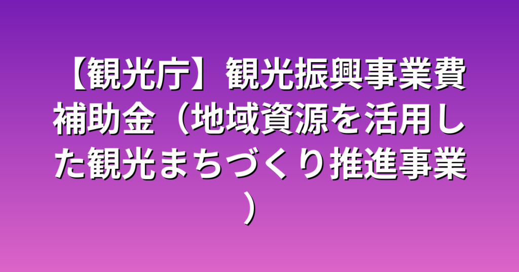 【観光庁】観光振興事業費補助金(地域資源を活用した観光まちづくり推進事業)