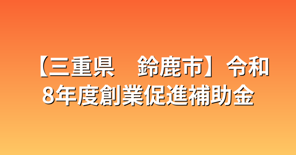 【三重県 鈴鹿市】令和8年度創業促進補助金