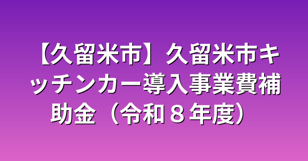 【久留米市】久留米市キッチンカー導入事業費補助金(令和8年度)