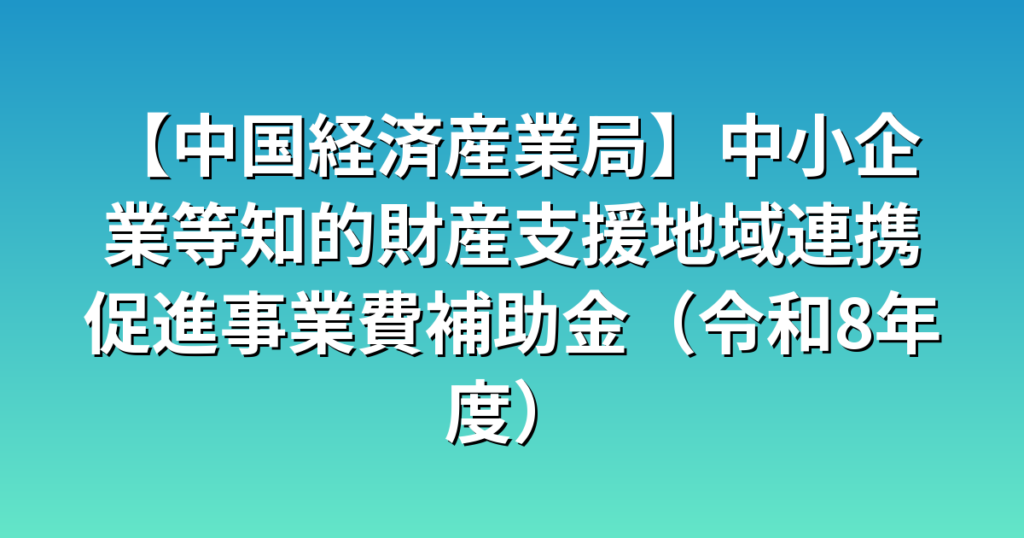【中国経済産業局】中小企業等知的財産支援地域連携促進事業費補助金(令和8年度)