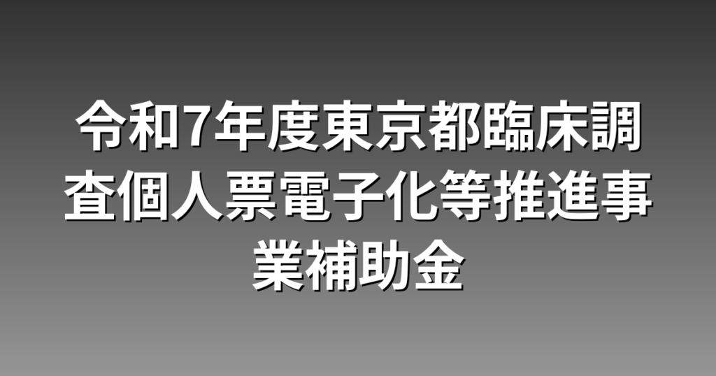 令和7年度東京都臨床調査個人票電子化等推進事業補助金