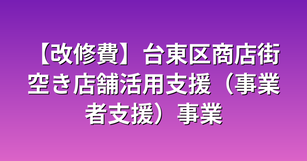【改修費】台東区商店街空き店舗活用支援(事業者支援)事業