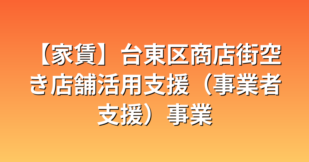 【家賃】台東区商店街空き店舗活用支援(事業者支援)事業