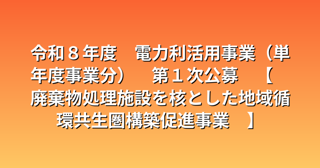 令和8年度 電力利活用事業(単年度事業分) 第1次公募 【 廃棄物処理施設を核とした地域循環共生圏構築促進事業 】