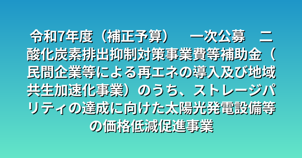 令和7年度(補正予算) 一次公募 二酸化炭素排出抑制対策事業費等補助金(民間企業等による再エネの導入及び地域共生加速化事業)のうち、ストレージパリティの達成に向けた太陽光発電設備等の価格低減促進事業